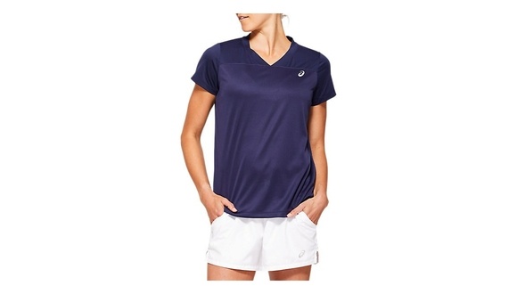 PRACTICE W SS TOP, созданный для раллийных и тренировочных занятий на теннисном корте, имеет облегающий крой и трикотажную ткань.