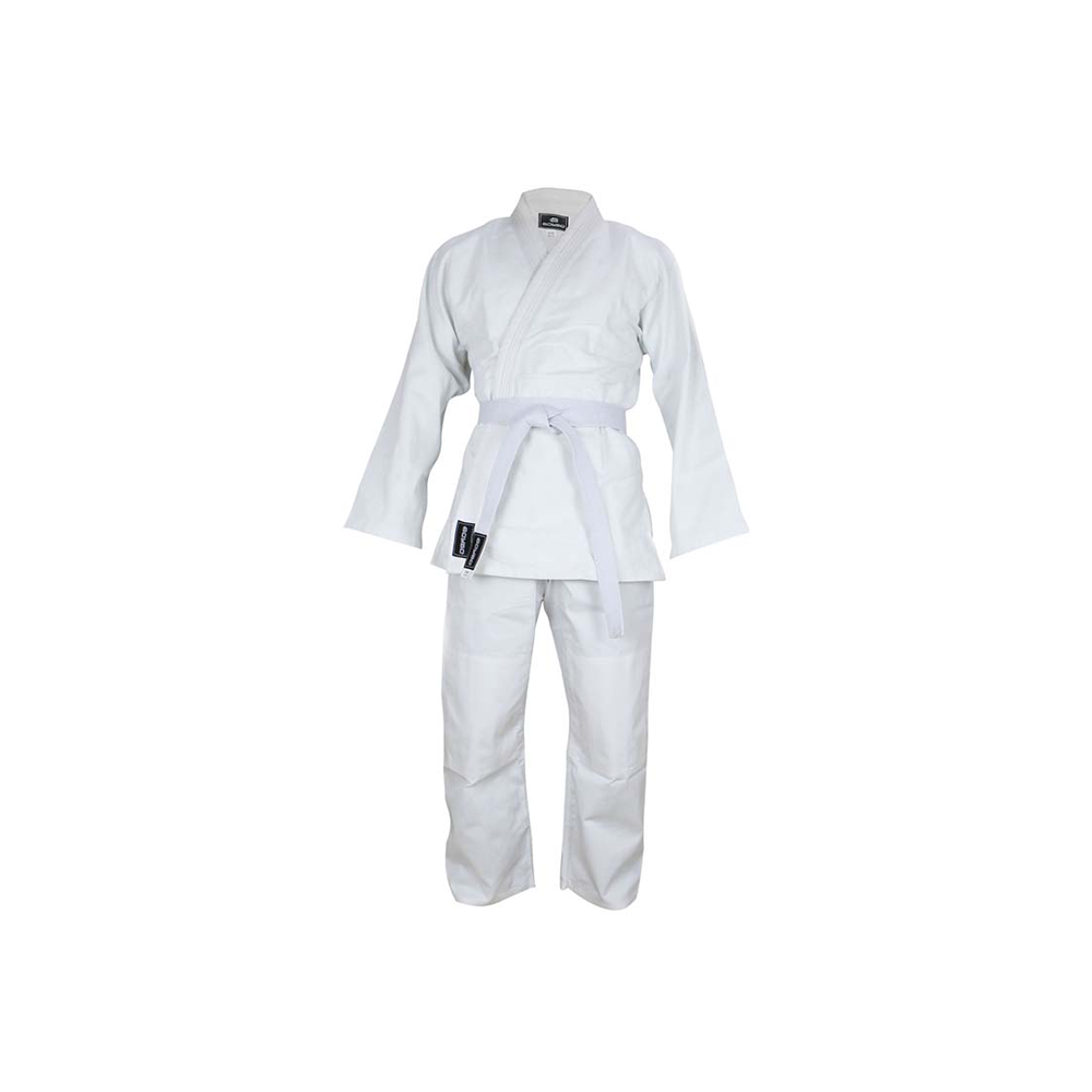 Кимоно дзюдо изготовлено из хлопка, который хорошо впитывает влагу и пропускает воздух. В комплект входит белый пояс, курта и брюки. Места, подверженные наиболее интенсивному воздействию (лацканы, колени, проймы) усилены специальными вставками. Современные лекала обеспечат максимум удобства при движениях спортсмена. Плотность ткани : куртка 425 г/кв.м., брюки 250 г/кв.м.