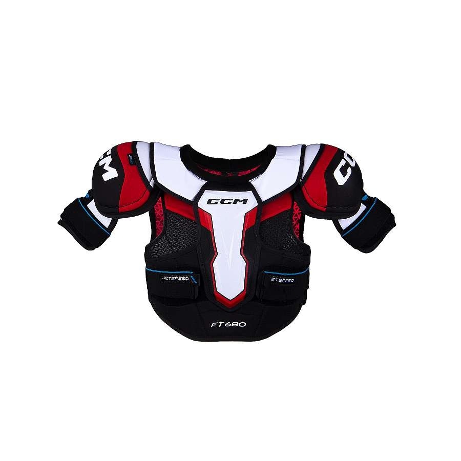 Нагрудник JETSPEED 680 - новинка 2023 года от компании CCM. Лёгкая, удобная и эффективная защита, которая не ограничивает игрока в движениях и обеспечивает максимально комфортные условия для игры. Двухслойная передняя конструкция из пенополиуретана обеспечивает повышенную подвижность без ущерба защитным свойствам. Дополнительная пластина, расположенная спереди, увеличена в размерах, а ключицы игрока защищены при помощи подвижной сегментированной конструкции. Лёгкий и надёжный пластик, из которого отлиты плечевые чашки, в которых реализована технология JDP, не утяжеляют нагрудник и надёжно оберегают плечи игрока от ушибов и травм. Перфорированная пена с системой вентиляции обеспечивает высокий уровень защиты грудной клетки и создает комфортные условия, чтобы игрок минимально отвлекался на скопившуюся влагу и дискомфорт.