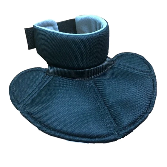 Защита шеи имеет комфортную посадку и обеспечивает эффективную защиту важного участка тела. Имеет легкую, подвижную конструкцию. Защита имеет двухсоставную конструкцию и состоит из мягкого элемента, охватывающего шею и сегментированного элемента закрывающего и защищающего область ключиц. Оба элемента подвижно соединены между собой мягкой связью. Внешняя отделка из прочного материала и устойчива к порезам и механическим повреждениям. Вспененный материал, используемый для внутреннего наполнения, поглощает энергию ударов, эффективно защищая шею и горло игрока. Мягкая подкладка обеспечивает дополнительный комфорт. Мягкая подкладка не раздражает и не натирает кожу шеи. Эластичный ремешок на липучке позволяет быстро отрегулировать плотность посадки.