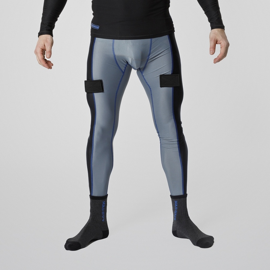 Бандаж-брюки MAD GUY Basic Compression - базовый слой одежды с защитой паховой области для хоккеистов. Модель имеет плотную посадку и создает необходимую компрессию, обеспечивает необходимую поддержку мышц, улучшает кровоток, снижает усталость и повышает выносливость, способствует быстрому восстановлению мышц после интенсивных физических нагрузок. Не ограничивает движений, обладает высокой стойкостью к истиранию, не травмирует кожный покров, отличается хорошей воздухопроницаемостью, что обеспечивает комфортный микроклимат внутри изделия. При производстве применяется современная трикотажная ткань, которая придает изделию высокие эксплуатационные характеристики, прочность и износостойкость, материал хорошо держит форму и не деформируется. Для дополнительной вентиляции имеются вставки из сетчатого материала. Область паха закрывается защитной чашей, которая фиксируется в специальном кармане, что не позволяет ей смещаться при активном движении. Для фиксации гамаш, над коленками предусмотрены специальные липучки.