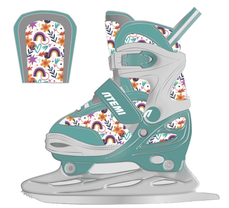 Коньки раздвижные Atemi Kids Forest ботинок из морозоустойчивых материалов (полумягкий), стелька EVA, Система фиксации (бакля,шнуровка,липучка), Лезвие- нержавеющая сталь 3 мм.