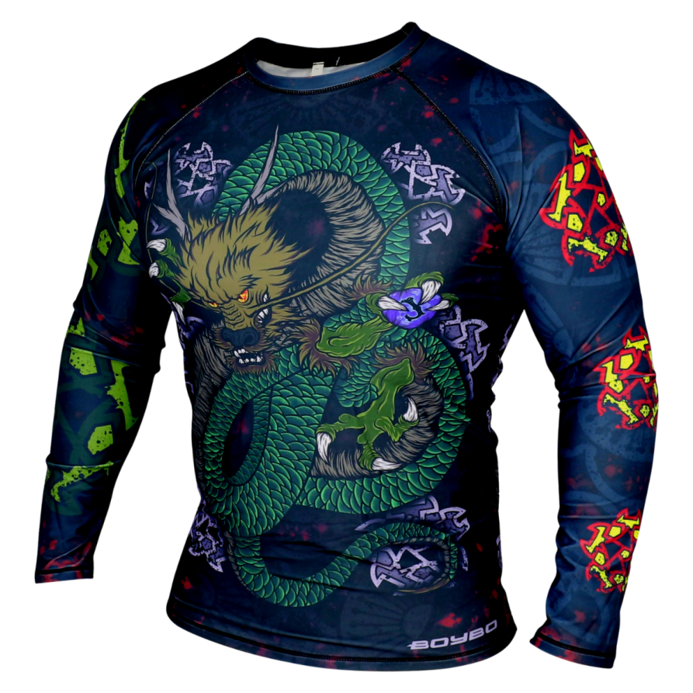 Дышащая эластичная ткань. Быстро сохнет после стирки. Длинный рукав обеспечивает защиту кожного покрова от агрессивного воздействия матов (татами) на него, а так же даёт дополнительную компрессию плечам и предплечьям. Помогает сохранить оптимальную температуру тела в течении тренировки. Рашгард подходит для кроссфита, мма, грэпплинга, классического и тайского бокса, работы с железом и фитнеса